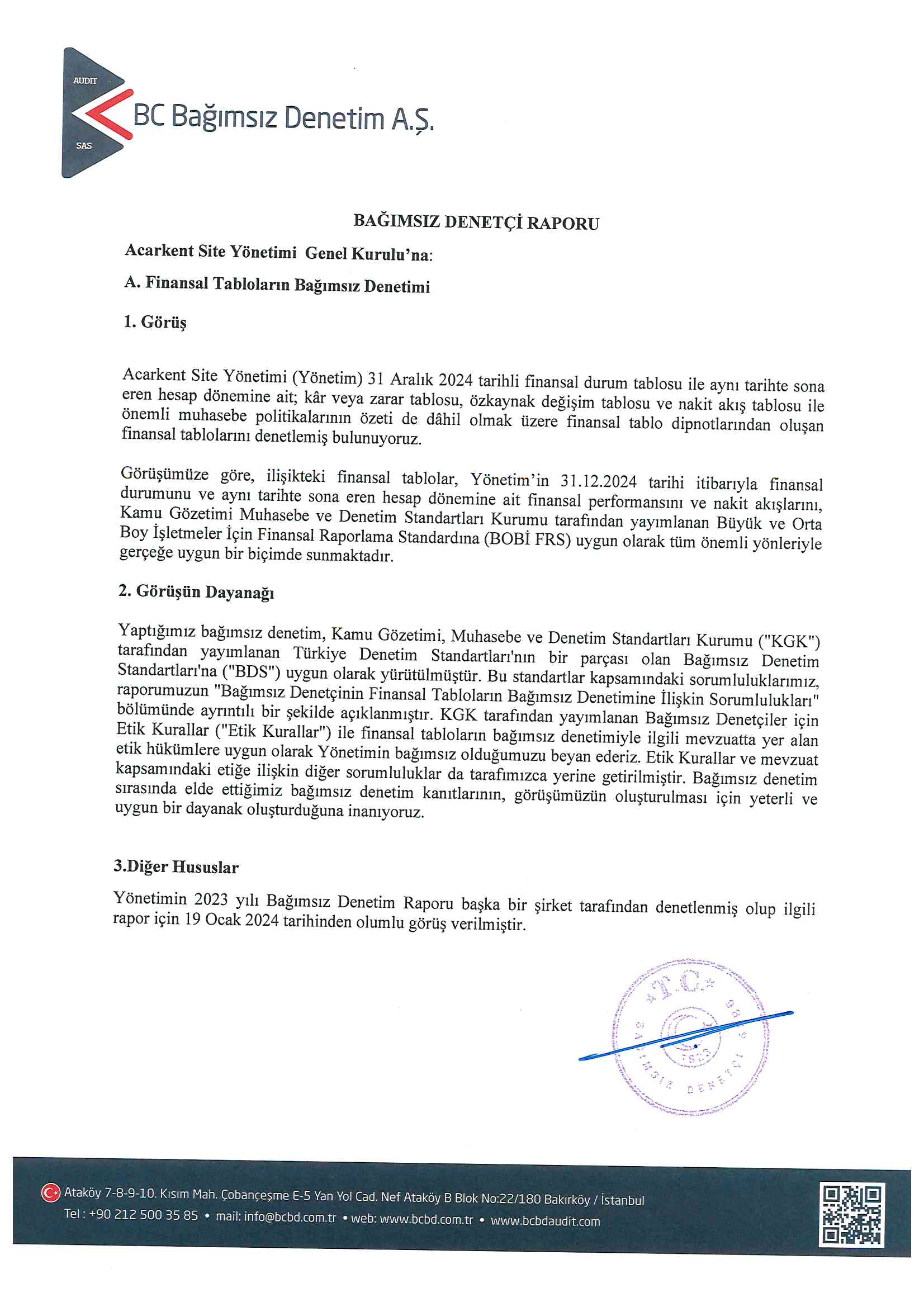 Haber & Duyurular Bağımsız Denetim Firmasının ACARKENT 2024 yılına ait Denetim Raporu 15 Ocak Çarşamba · 2025