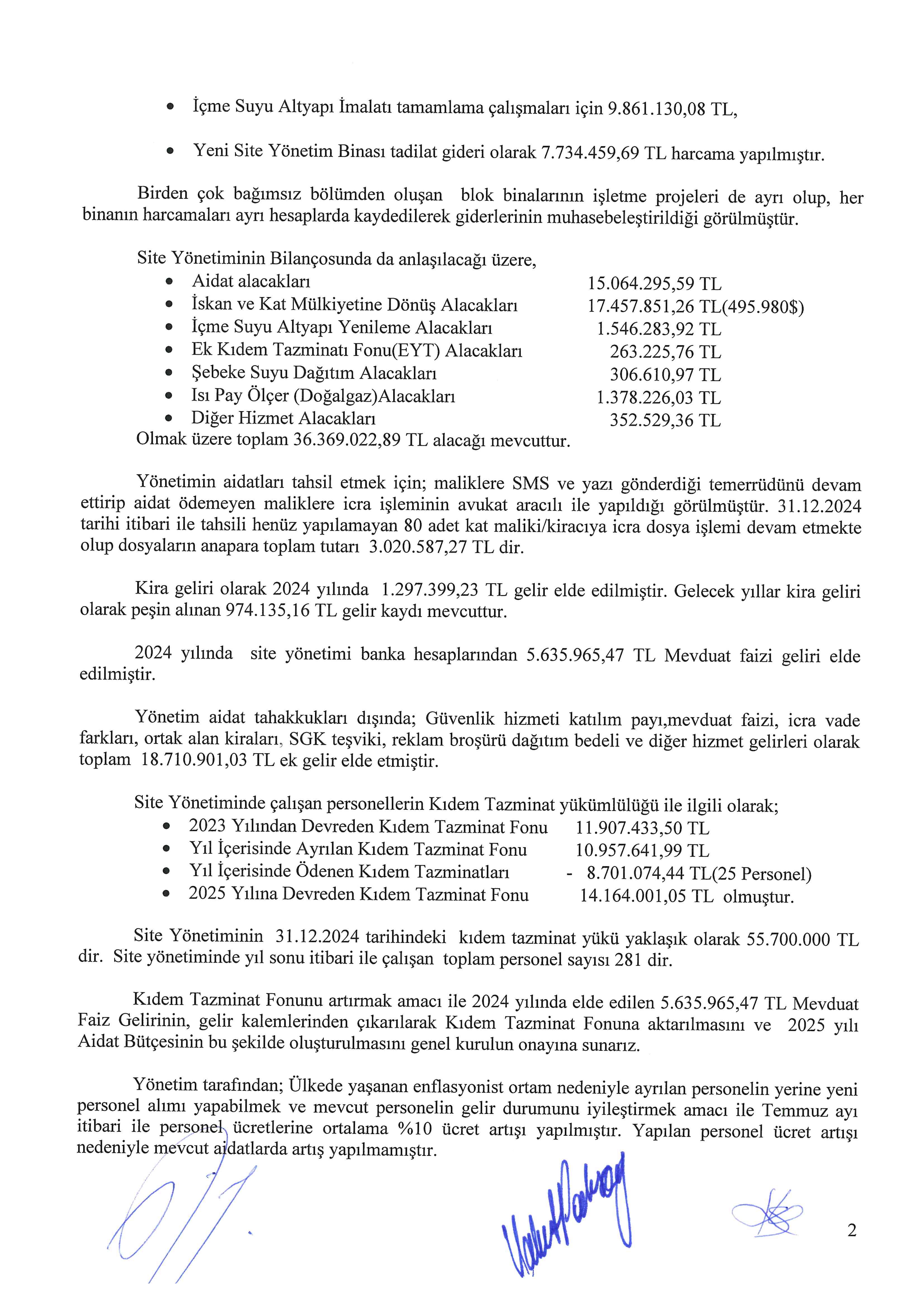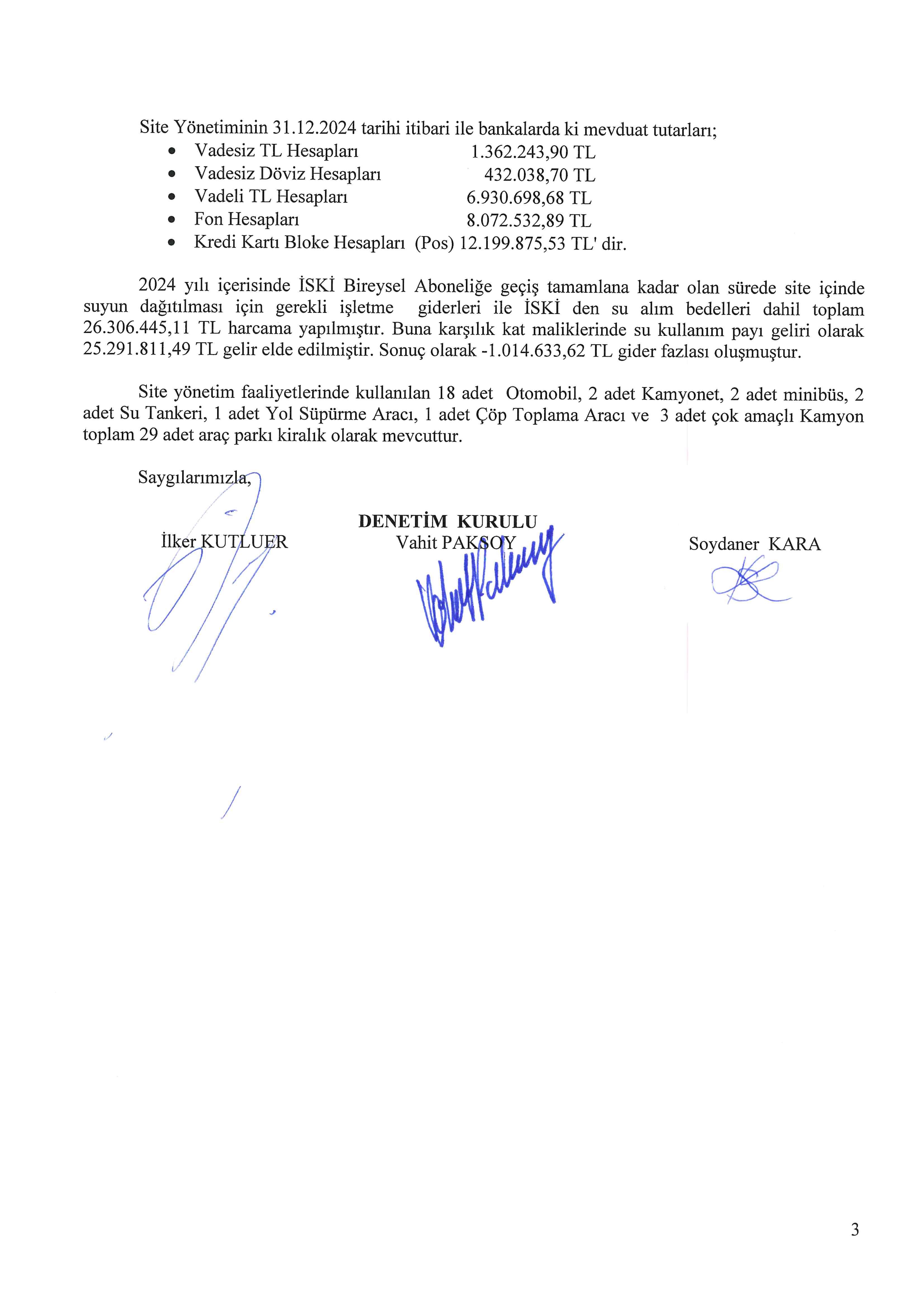 ACARKENT 2024 yılı Denetim Kurulu Raporu