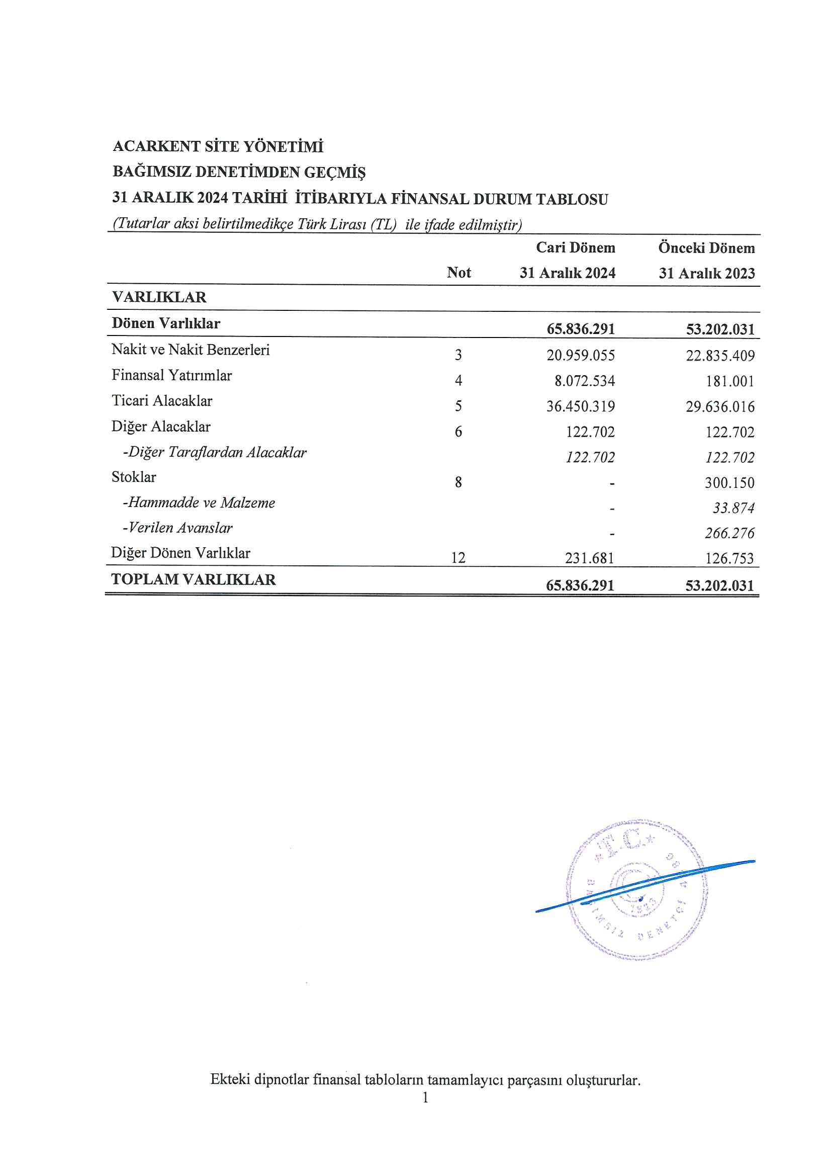 Haber & Duyurular Bağımsız Denetim Firmasının ACARKENT 2024 yılına ait Denetim Raporu 15 Ocak Çarşamba · 2025