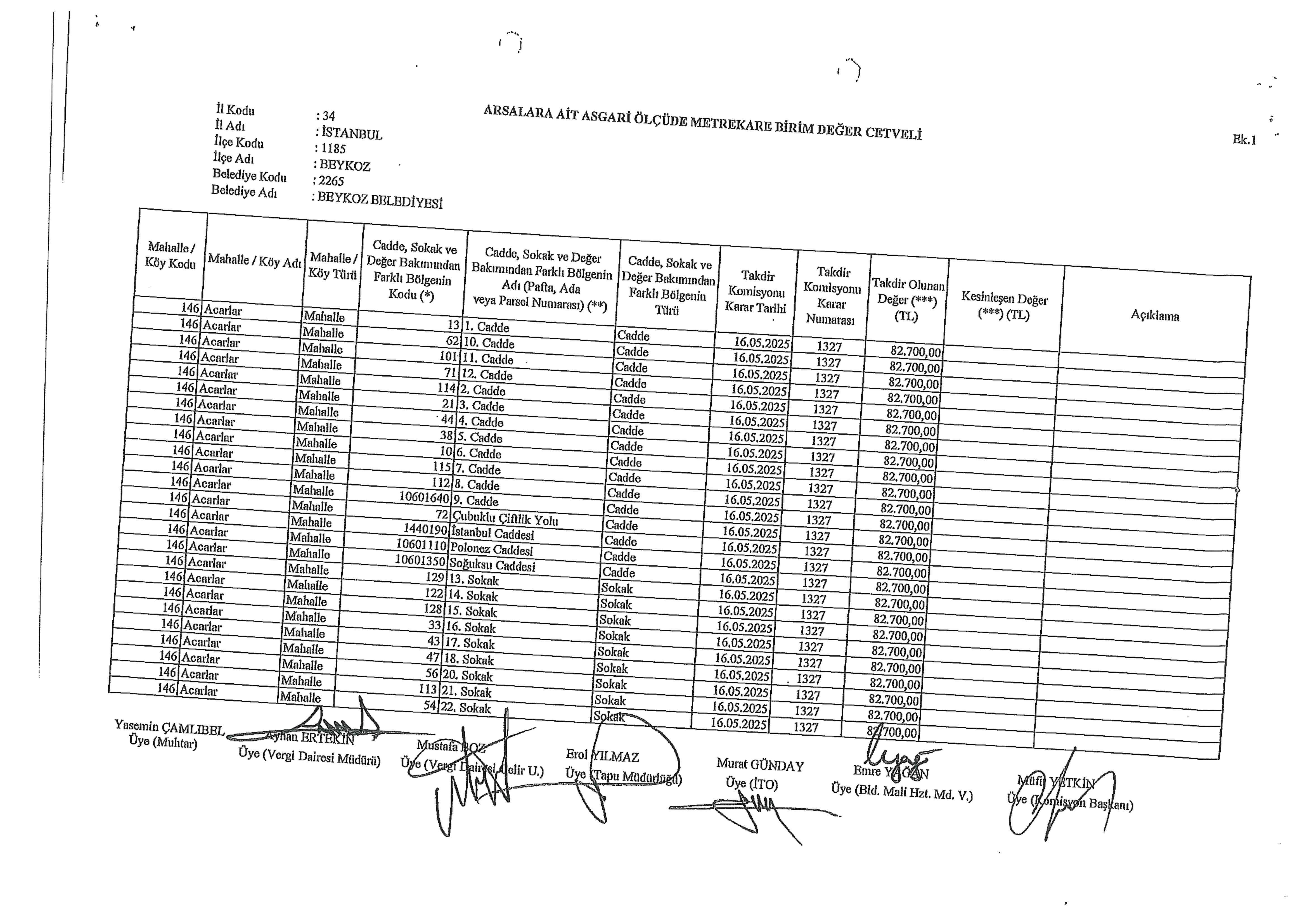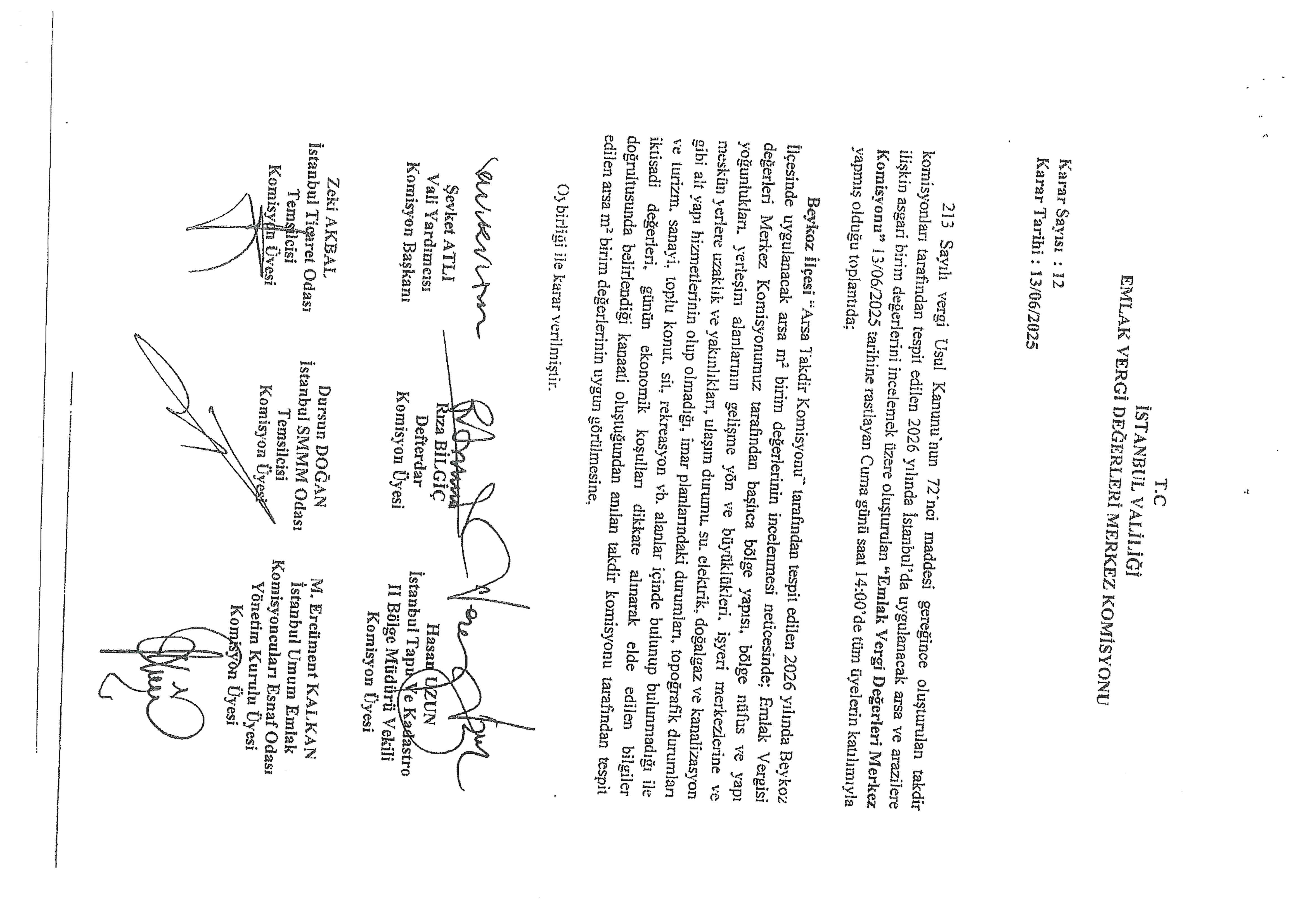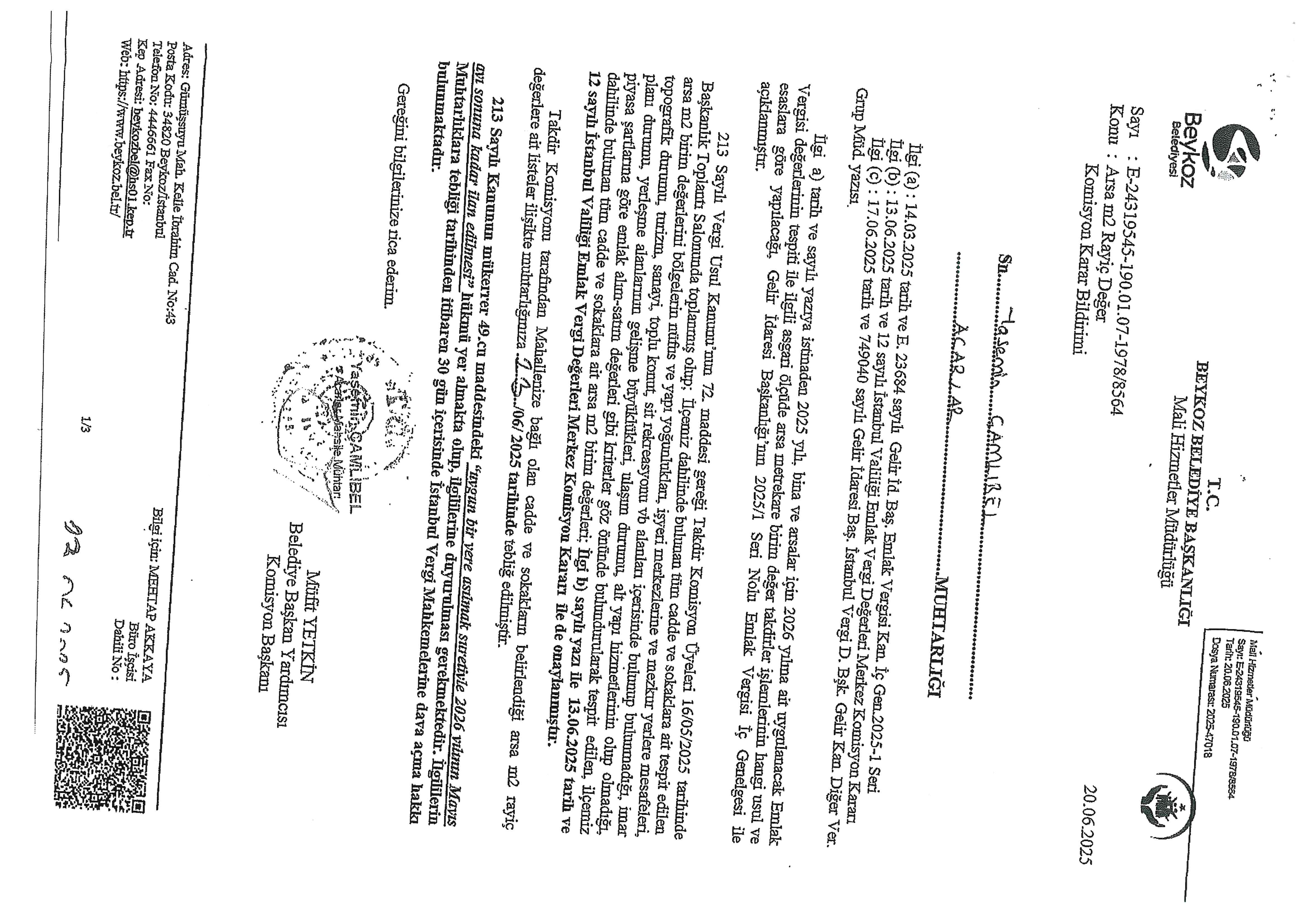 Sn. Acarkent Kat Maliki, Site Yönetimi'nin 01.07.2025 tarih, 062 sayılı "2026 Yılı Emlak Vergisi Rayiç Bedelinin Artışı" konulu yazısı ve Komisyon Kararı,
