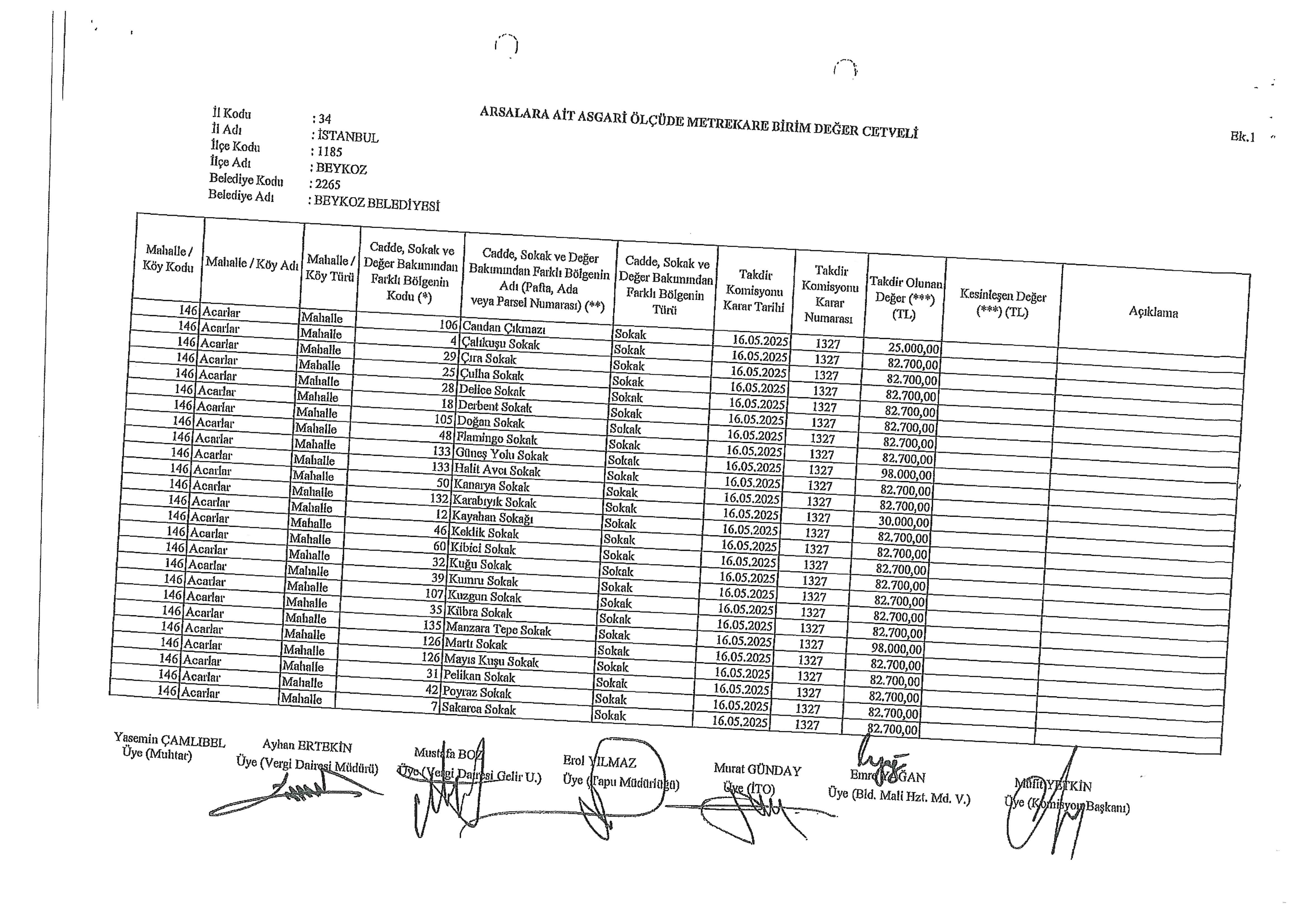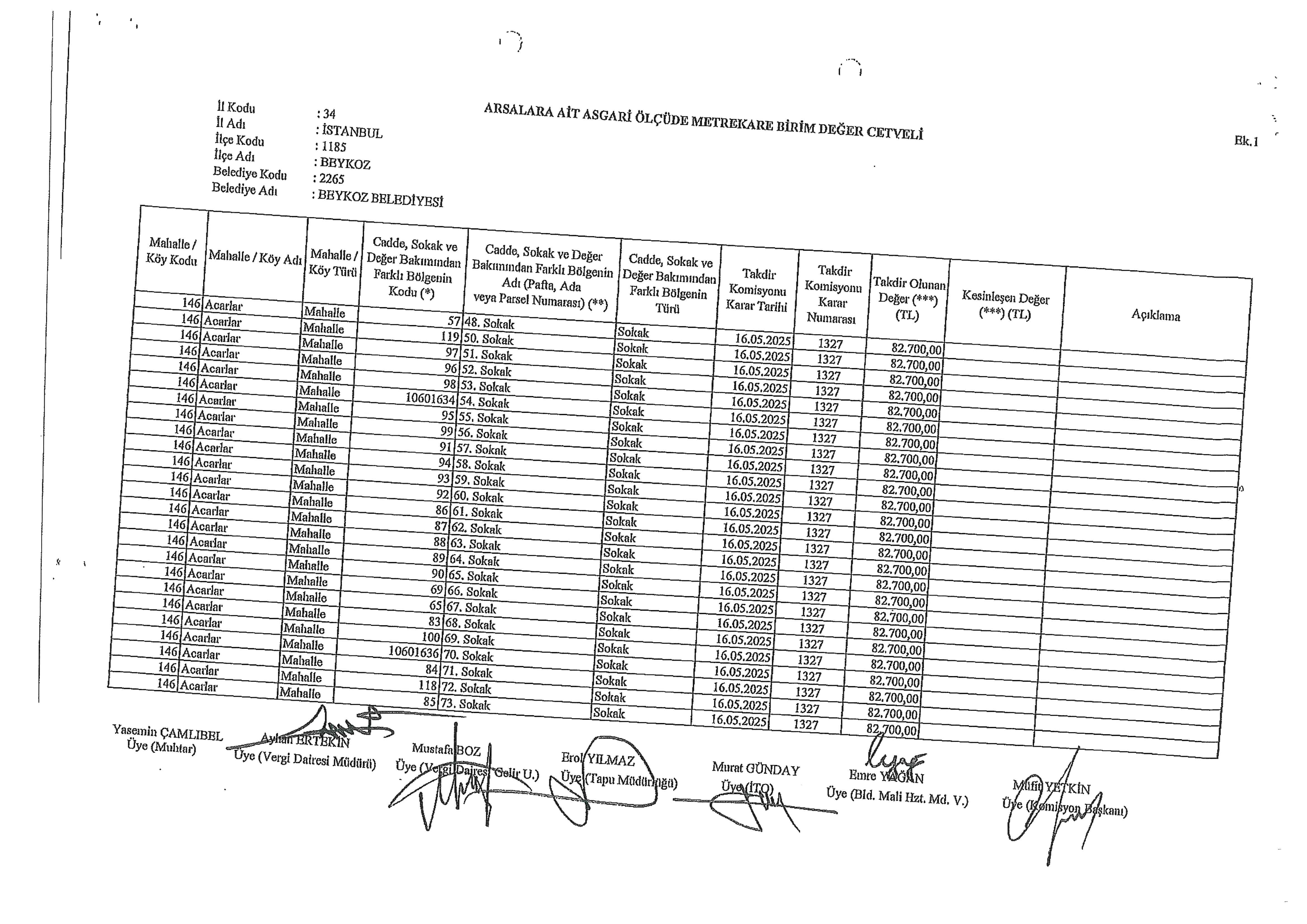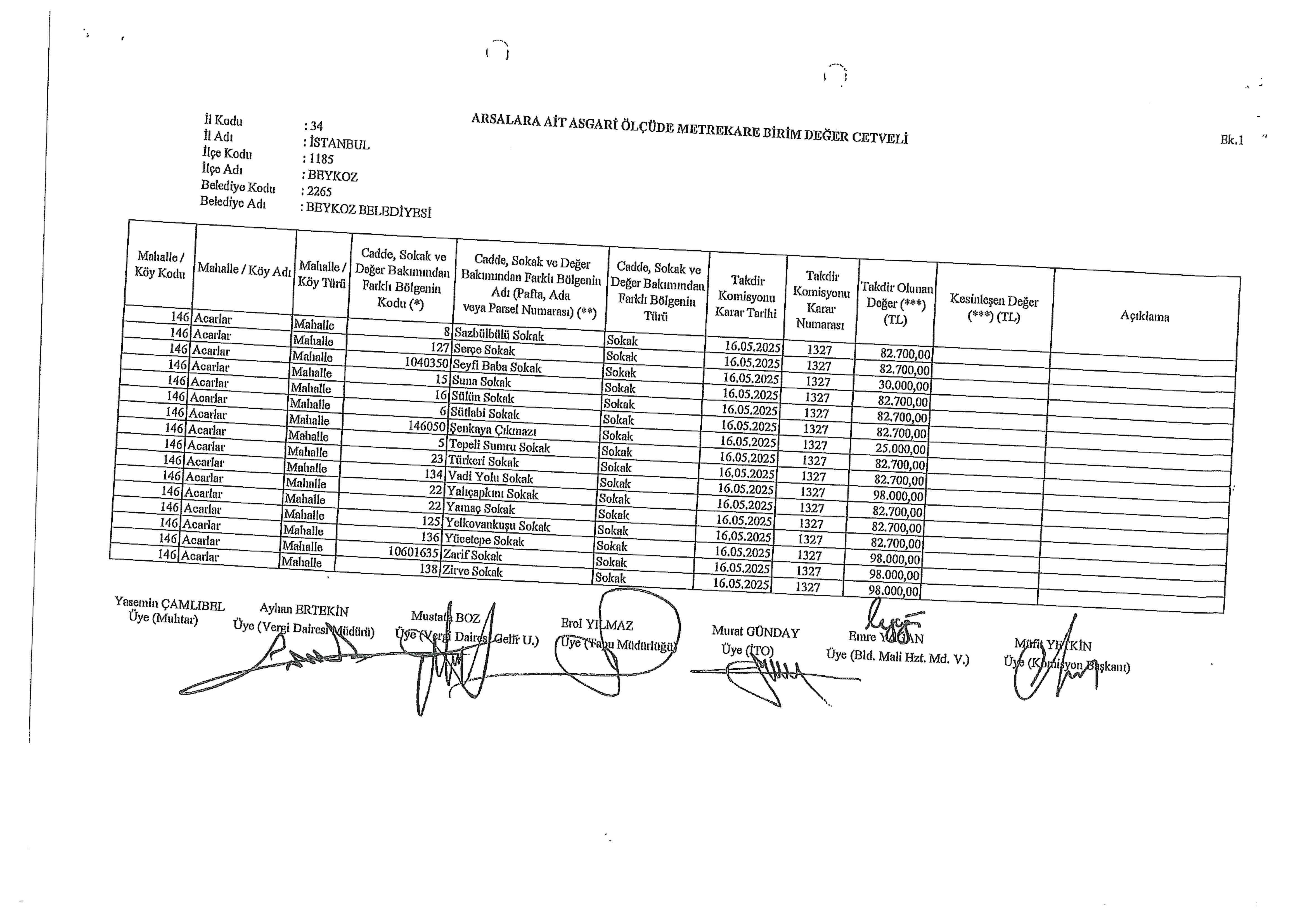 Sn. Acarkent Kat Maliki, Site Yönetimi'nin 01.07.2025 tarih, 062 sayılı "2026 Yılı Emlak Vergisi Rayiç Bedelinin Artışı" konulu yazısı ve Komisyon Kararı,